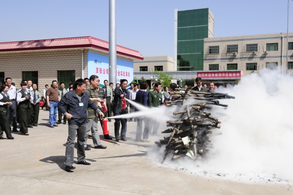 上午10時整,演練活動總指揮、劉建民總經(jīng)理宣布演練正式開始。演練活動副總指揮、葉成海副總經(jīng)理強調(diào)了此次演練的目的和意義。下花園區(qū)消防大隊長蔡鳳武應邀對不同滅火器材的操作方法進行了現(xiàn)場講解和指導。