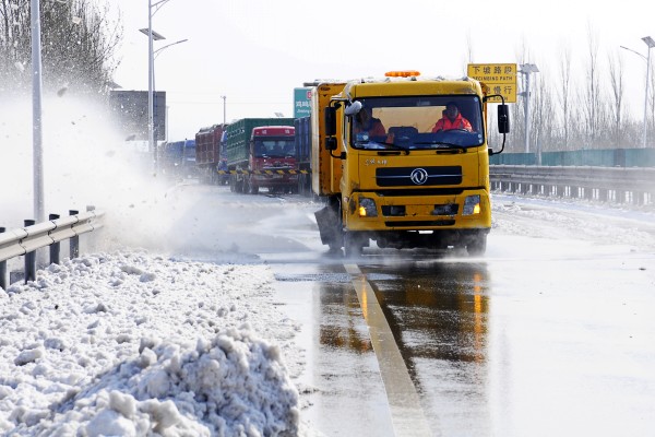 5日上午,公司接到上級(jí)電話通知和省廳轉(zhuǎn)發(fā)的北京市交通安全應(yīng)急指揮部《關(guān)于共同開展京藏高速公路搶通保暢工作的緊急函》,按照領(lǐng)導(dǎo)批示,公司投入全部養(yǎng)護(hù)人員,并動(dòng)用協(xié)作單位力量,最大限度加大除雪力度,加快處置京張路段積雪,確保在八達(dá)嶺路段的擁堵車輛及時(shí)駛離北京,有效緩解了北京市的交通壓力。當(dāng)晚,為防止路面結(jié)冰,公司又派出融雪劑噴灑車上路進(jìn)行了補(bǔ)充作業(yè)。