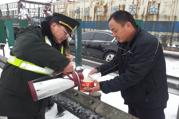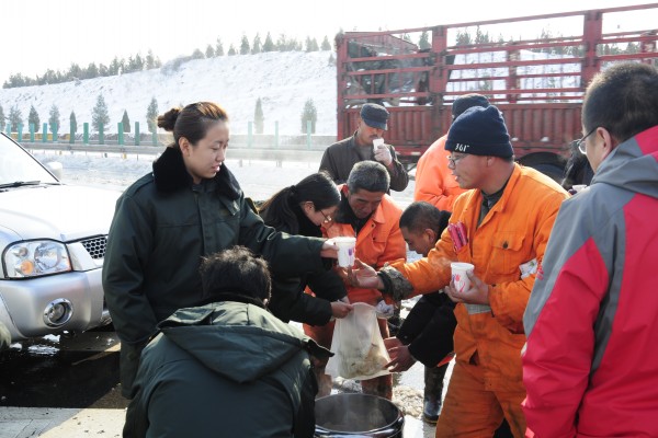 在這次除雪過(guò)程中,京張公司全面啟動(dòng)應(yīng)急預(yù)案,各部門齊心協(xié)力,值班人員24小時(shí)在崗,監(jiān)控中心及時(shí)發(fā)布路況。在全力做好除雪工作的同時(shí),公司、各收費(fèi)站和服務(wù)區(qū)還派出服務(wù)車為路上滯留人員送去開水、方便面、火腿腸和榨菜等應(yīng)急食品,并給部分因低溫天氣而拋錨的故障車輛提供維修服務(wù)。同時(shí)在路上辛苦工作的養(yǎng)護(hù)工人也喝到了雞蛋湯,吃上了熱氣騰騰的包子。