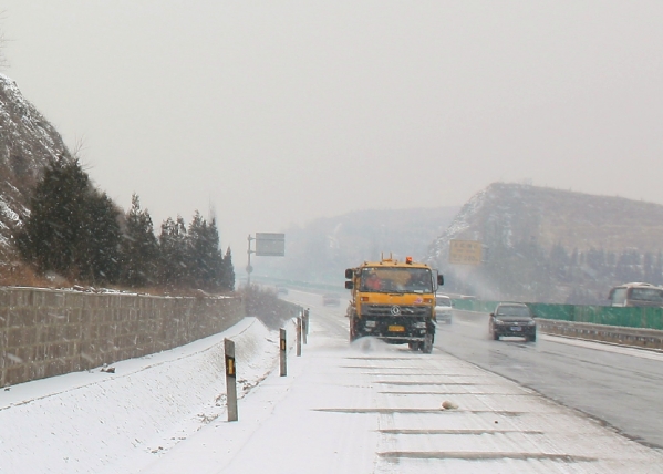 7日晚到8日凌晨,京張路段再次開始降雪,為防夜晚路面結(jié)冰,除雪隊在重點路段加大融雪液的灑布量,以達(dá)到溶雪溶冰效果,徹底消除行車安全隱患。同時派兩輛巡查車在全線進(jìn)行不間斷巡查,并利用全程監(jiān)控系統(tǒng)及時掌握全線雪情和除雪車輛運(yùn)行情況,及時向除雪辦公室和領(lǐng)導(dǎo)匯報。監(jiān)控中心通過手機(jī)短信、可變情況板將雪情和路況信息于第一時間對外發(fā)布。