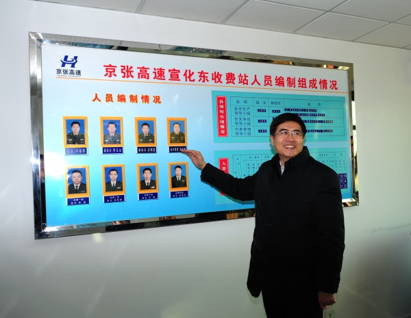 在宣化東收費(fèi)站,孫智勇一行查看了收費(fèi)站的榮譽(yù)室、票證室、結(jié)算室、宿舍、星級(jí)考核欄、站務(wù)公開欄等,詳細(xì)了解收費(fèi)站的人員組成、收費(fèi)任務(wù)的完成情況、收費(fèi)流程、隊(duì)伍建設(shè)等情況。在結(jié)算室,孫智勇專門讓票證員拿來收費(fèi)結(jié)算的單據(jù),詳細(xì)了解收費(fèi)結(jié)算流程,并親切詢問收費(fèi)員的家庭、生活、收入等情況,感謝他們?yōu)楣咀龀龅呢暙I(xiàn)。在認(rèn)真了解公司對(duì)收費(fèi)人員實(shí)行的星級(jí)考核內(nèi)容后,他給予了充分的肯定和贊許,認(rèn)為這種考核辦法既考慮了行業(yè)特點(diǎn)又結(jié)合了現(xiàn)代企業(yè)的要求,對(duì)于調(diào)動(dòng)員工的工作積極性、提高企業(yè)的效益有極大的促進(jìn)作用。