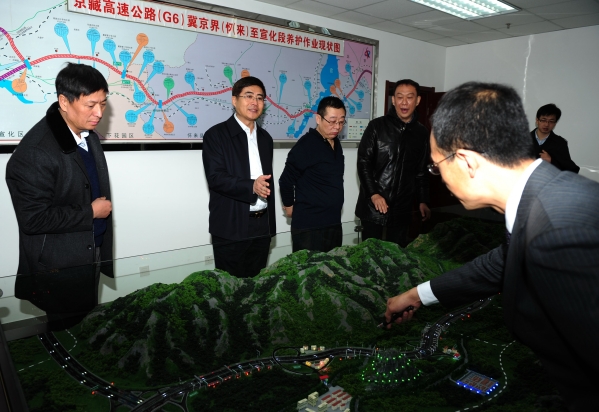 京張高速是國(guó)際奧委會(huì)考察團(tuán)到張家口進(jìn)行考察評(píng)估的必經(jīng)之路,是面向世界的一個(gè)重要窗口,下花園服務(wù)區(qū)是河北省和張家口市申奧辦公室指定的奧運(yùn)休息站之一。孫智勇一行首先乘車沿途查看了京張高速的路容路貌以及公司為申冬奧所做的一系列專項(xiàng)工程。劉建民總經(jīng)理詳細(xì)介紹了公司按照河北省政府提出的“將京張高速打造成河北第一迎賓大道”的要求,在中修罩面、綠色廊道建設(shè)品質(zhì)提升、路側(cè)波形梁護(hù)欄增設(shè)、全線防撞護(hù)欄及防眩板噴漆刷新、官?gòu)d湖特大橋外護(hù)欄更換、重新施劃受損道路標(biāo)線以及在冀京界安裝龍門架,設(shè)置“河北歡迎您”大型宣傳牌、在下花園服務(wù)區(qū)設(shè)置大型迎賓廣告牌,營(yíng)造濃厚的申奧氛圍等方面投入的大量人力物力,以及受到河北省領(lǐng)導(dǎo)和省申冬奧辦表?yè)P(yáng)和肯定的情況。