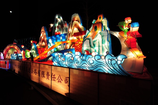 在燈展上,來自京張公司的主題為“喜迎冬奧,和諧京張”的大型展臺,以獨特的造型和璀璨的光影效果,吸引眾多游人駐足觀看。展臺長10米,寬2米,高5米,底座以長城墻體為支撐,以雞鳴山為背景,以高速大橋為連接。雞鳴古驛,祥云仙鶴圍繞,山水相連,官廳湖鯉魚歡躍,寓意風(fēng)調(diào)雨順、年年有余;雄偉的官廳湖特大橋如長虹臥波,是通往北京的重要交通樞紐,也是連接京張兩地的情感之橋;展臺主體兩側(cè),滑雪健兒從崇山峻嶺上滑躍而下,代表當(dāng)?shù)厝嗣駸釔郾┻\動。整個展臺充分表現(xiàn)了當(dāng)?shù)氐牡乩硖攸c和歷史文化氛圍,在烘托熱烈祥和的節(jié)日氛圍的同時,也表達了京張兩地共盼冬奧的熱切心情。(何文儒/文,李 勇/圖)