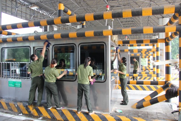 近日,由于暑期車流量激增,收費(fèi)一線環(huán)境衛(wèi)生的保持成了一大難題。沙城站黨支部書記張麗芝帶領(lǐng)支部委員和其他黨員領(lǐng)導(dǎo)干部到收費(fèi)一線帶頭清理環(huán)境衛(wèi)生,擦臺(tái)面、撿垃圾、清掃島頭,專撿臟活累活干,以實(shí)際行動(dòng)踐行黨的宗旨,保持公仆情懷,牢記共產(chǎn)黨員永遠(yuǎn)是勞動(dòng)人民的普通一員,密切聯(lián)系群眾,全心全意為人民服務(wù)。黨員鄭立、胡彥梅忙碌的身影穿梭在收費(fèi)亭與收費(fèi)車道之間,累得滿頭大汗,充分發(fā)揮了黨員的先鋒模范作用。收費(fèi)班長(zhǎng)薛伯東、機(jī)電維護(hù)員王嶸,收費(fèi)員李巖、佟桂軍、譚鵬鵬等同志,也都爭(zhēng)先恐后地?fù)屩。?jīng)過三個(gè)多小時(shí)的奮戰(zhàn),收費(fèi)亭、收費(fèi)廣場(chǎng)、安全島頭、排水渠等部位得到了全面徹底的清理,站區(qū)面貌煥然一新。此時(shí),大家早已汗流頰背,卻沒有一個(gè)人喊苦喊累,看著干凈整潔的站區(qū)環(huán)境欣慰地笑了,因?yàn)槟転檫^往司乘提供干凈整潔、安全暢通的行車環(huán)境是我們最大的快樂,能夠?qū)崒?shí)在在地為司乘提供優(yōu)質(zhì)服務(wù)是黨員領(lǐng)導(dǎo)干部和職工們共同的心聲。